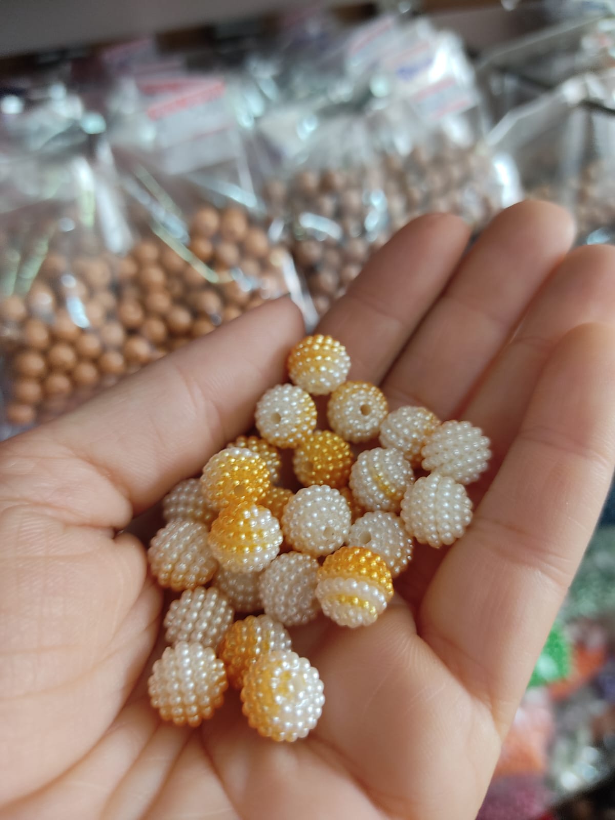 Pérola craquelada 10 mm 20g mesclada amarelo e branco